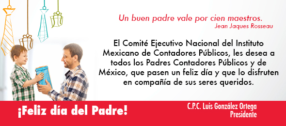 ¡Feliz día del Padre! admin_imcp Primera Plana, Servicios, Síntesis Informativa 13 junio, 2014 Navegación de entradas Previous post Prevén mayor dinamismo económico regional en MéxicoNext post IMCP | Síntesis Informativa 16 de junio de 2014