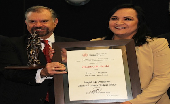 El día de hoy la C.P.C. Leticia Hervert Sáenz, Presidenta del Comité Ejecutivo Nacional (CEN) del Instituto Mexicano de Contadores Públicos (IMCP) entregó un merecido reconocimiento al Presidente Magistrado Manuel Luciano Hallivis Pelayo por ser un destacado Abogado Fiscalista del país.