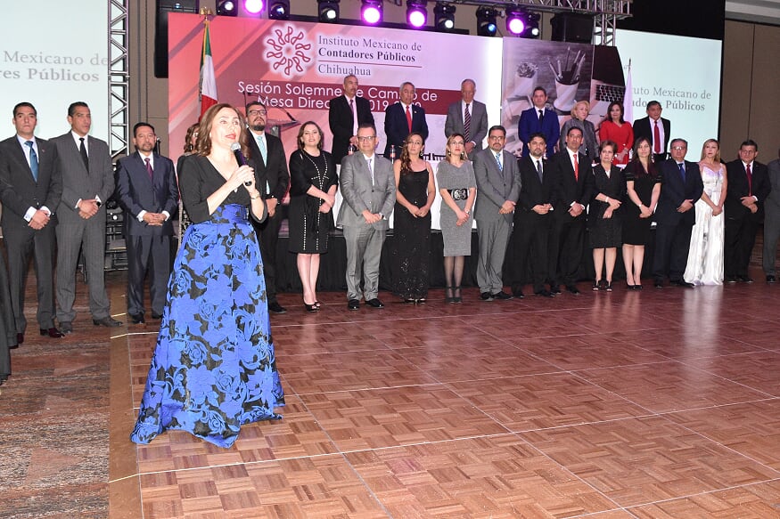 El pasado viernes 18 de enero del presente se llevó a cabo la celebración del evento Cambio de Consejo Directivo del Instituto y Colegio de Contadores Públicos de Chihuahua A.C. (ICCPCH). Fue la Vicepresidenta del Instituto Mexicano de Contadores Públicos (IMCP), la C.P.C. Diamantina Perales Flores, quien tomó protesta al C.P.C. Leopoldo Manjarrez Alvídrez y le entregó la insignia que lo distingue como Presidente del ICCPCH.“Ustedes han comprobado lo hermoso que es esta vida colegiada, por lo que quiero agradecer la participación de este colegio de Chihuahua, a la región y al instituto”, manifestó la C.P.C. Diamantina en su discurso. Por otro lado, el C.P.C. Leopoldo Manjarrez, presentó su plan de trabajo del Consejo Directivo para la gestión 2019 – 2020, en donde destacó que todos los integrantes del consejo son una pieza fundamental para lograr los objetivos trazados. Por su parte el C.P.C. Rodolfo Landa Parra, Presidente saliente del ICCPH, agradeció todo el apoyo recibido durante su año de gestión y mencionó algunos de los logros obtenidos, entre los que destaca el haber llegado al 4to lugar a nivel nacional de los Colegio de Contadores Públicos más activos, así como la realización de cursos, diplomados y capacitaciones constantes, realizando eventos todas las semanas del año. También presentes el Maestro Servando Salcido Garza, de la Facultad de Contaduría y Administración de la Universidad Autónoma de Chihuahua (UACH); la Maestra Ana Lilia Rivera Flores, Tesorera de la UACH; Amanda Córdoba, Tesorera de la Presidencia Municipal; el C.P. Hipólito Vázquez, Profesor Distinguido; el C.P.C. Juan Arturo Rodríguez, Vicepresidente Regional Zona Noreste del IMCP y el C.P. Alberto José Herrera, Director de Pensiones Civiles del Estado, en representación del Gobernador Javier Corral. ¡Enhorabuena!