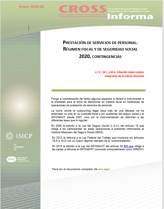 CROSS 2020-02 PRESTACIÓN DE SERVICIOS DE PERSONAL. RÉGIMEN FISCAL Y DE SEGURIDAD SOCIAL 2020, CONTINGENCIAS