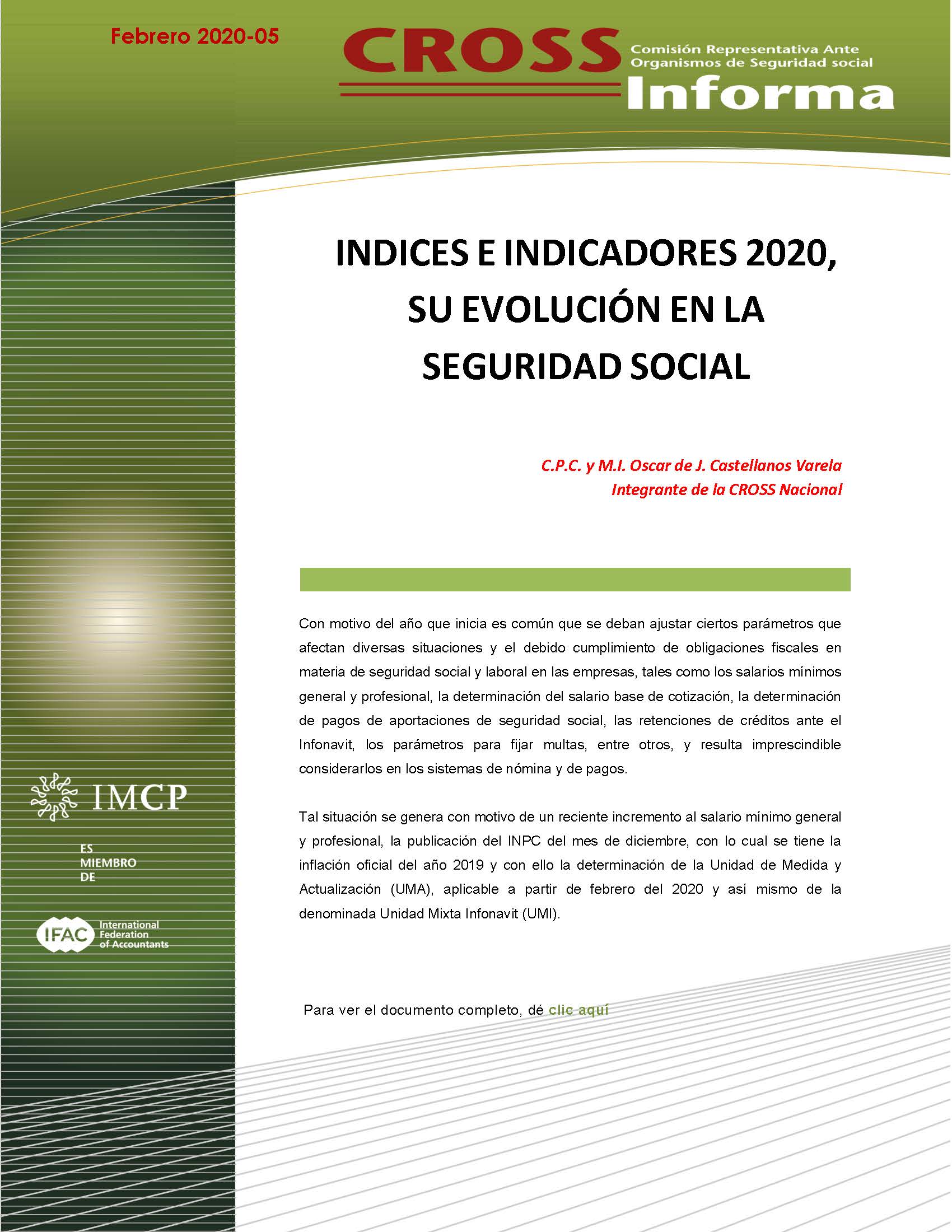 CROSS 2020-05 INDICES E INDICADORES 2020, SU EVOLUCIÓN EN LA SEGURIDAD SOCIAL