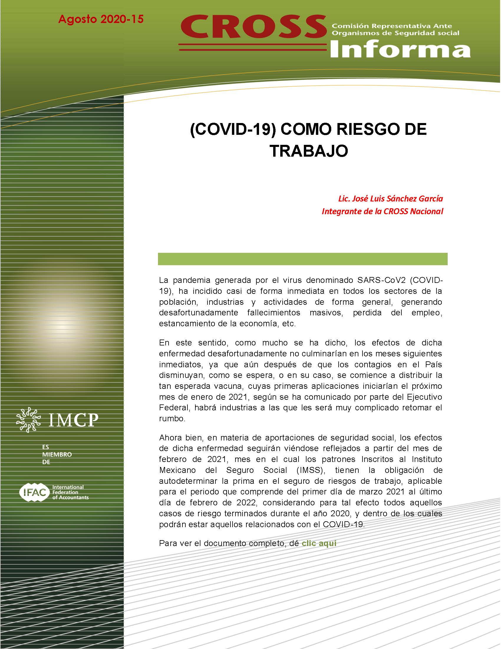 CROSS 2020-15 (COVID-19) COMO RIESGO DE TRABAJO