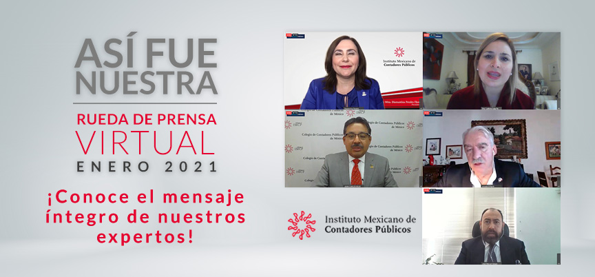 Hoy 22 de enero de 2021, se llevó a cabo la conferencia mensual del Instituto Mexicano de Contadores Públicos A.C. (IMCP), con la participación de: