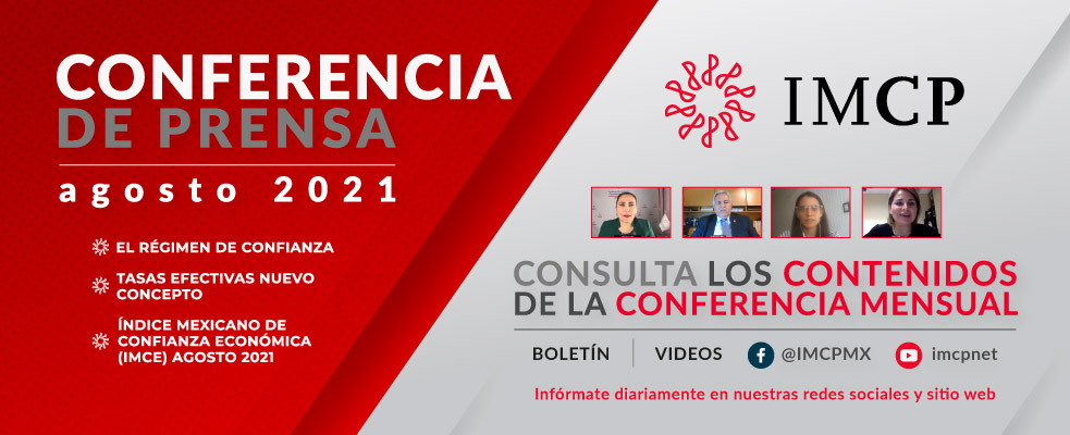 El día de hoy, 24 de agosto de 2021, se llevó a cabo la Conferencia de Prensa mensual del IMCP, con la participación de: