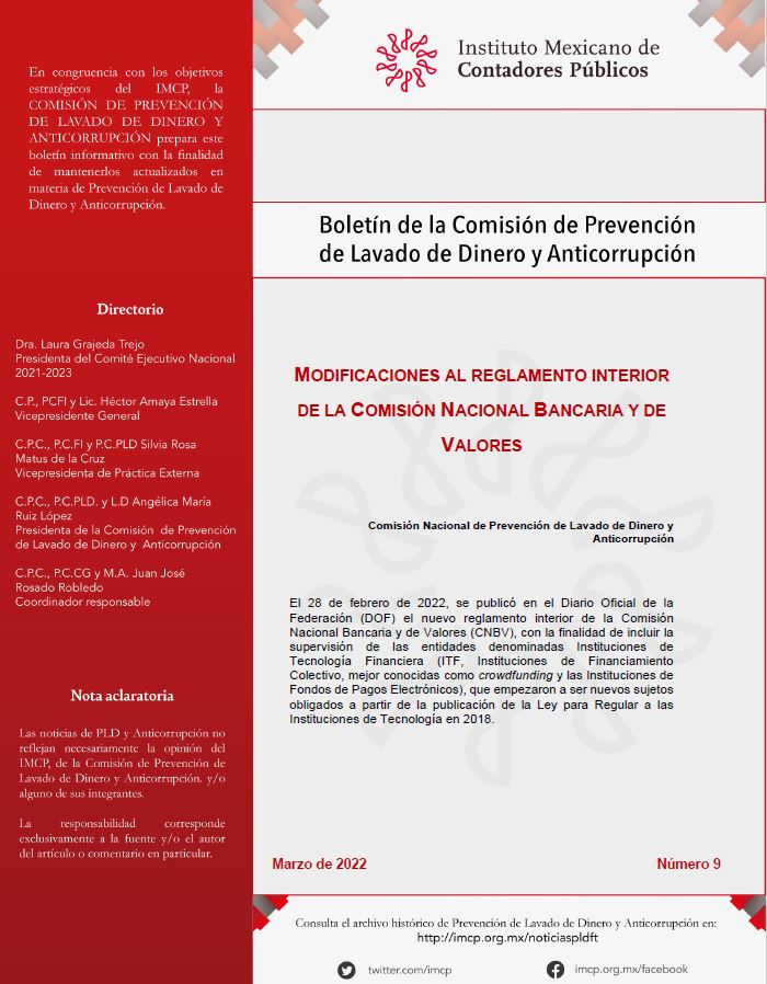 Boletín de la Comisión Nacional de Prevención de Lavado de Dinero y Anticorrupción 09 / Marzo 2022