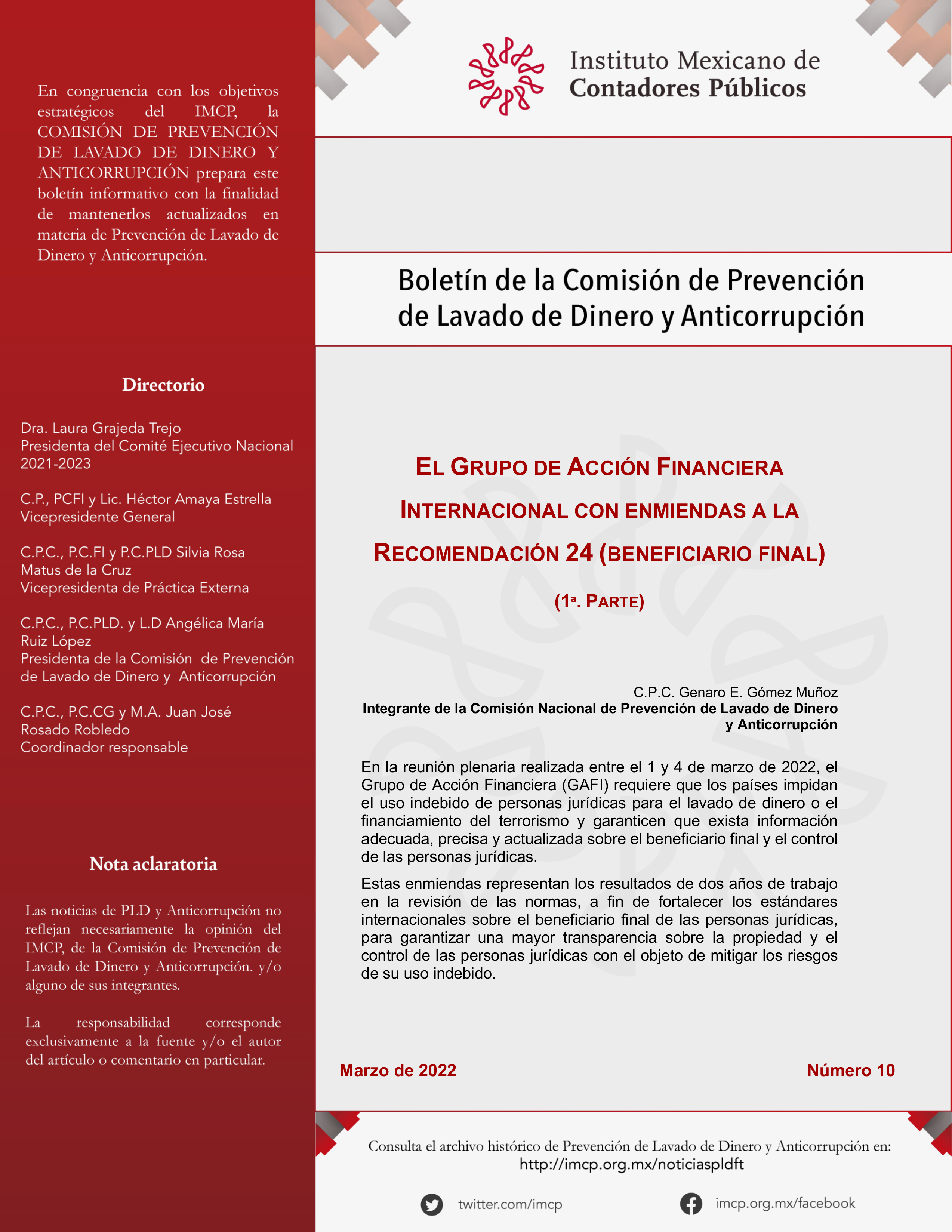Boletín de la Comisión Nacional de Prevención de Lavado de Dinero y Anticorrupción 10 / Marzo 2022