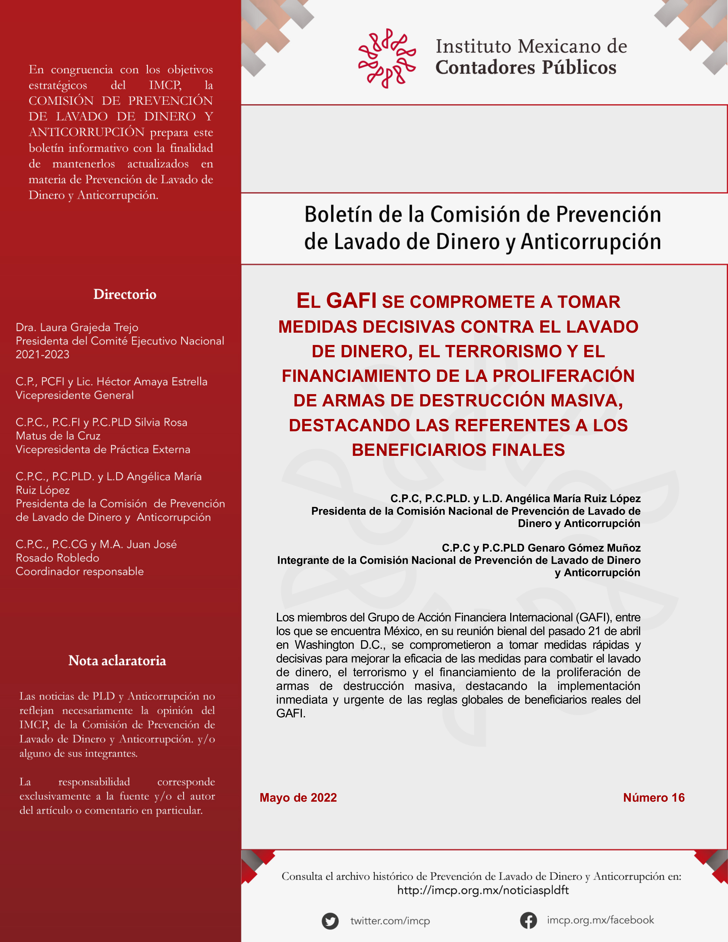 Boletín de la Comisión Nacional de Prevención de Lavado de Dinero y Anticorrupción 16 / Mayo 2022