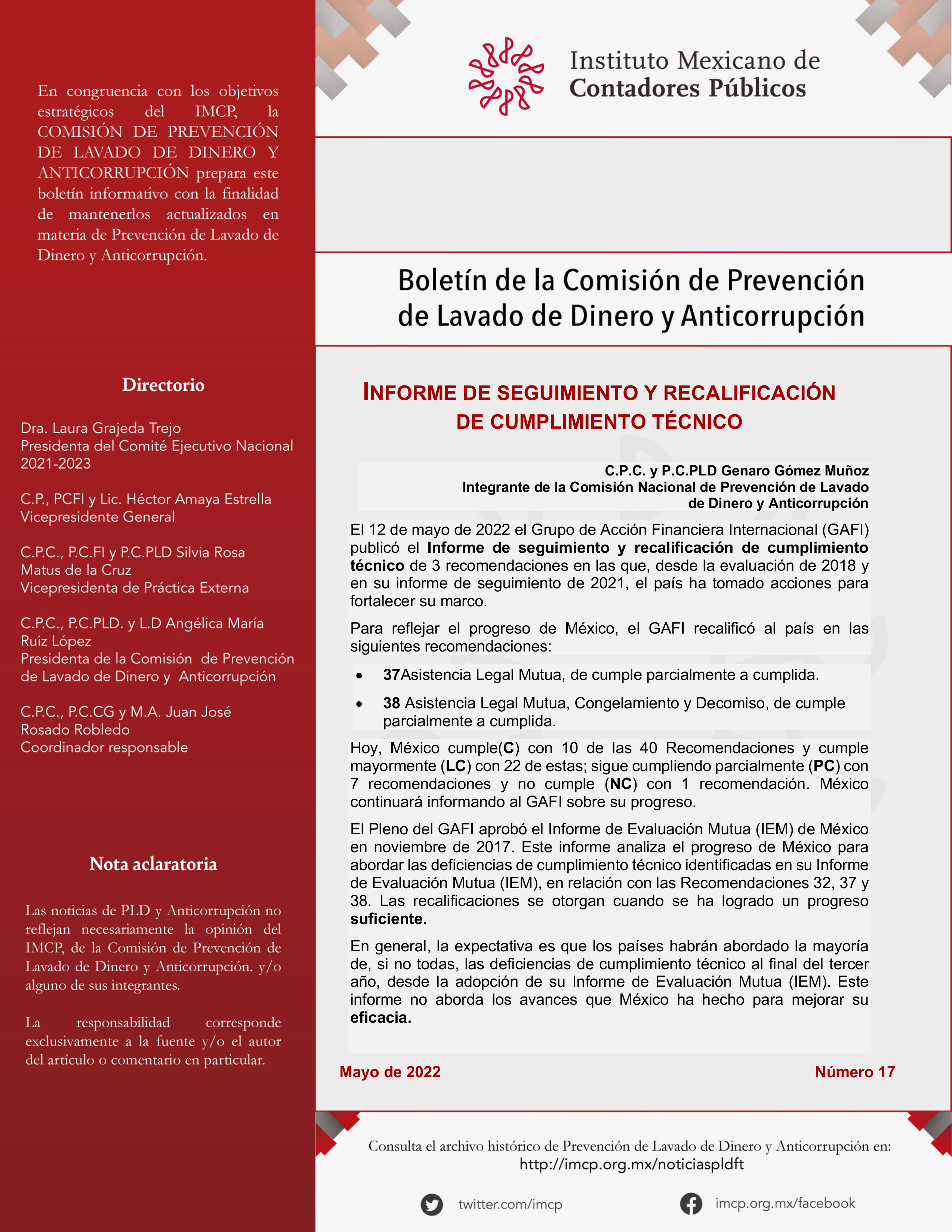Boletín de la Comisión Nacional de Prevención de Lavado de Dinero y Anticorrupción 17 / Mayo 2022