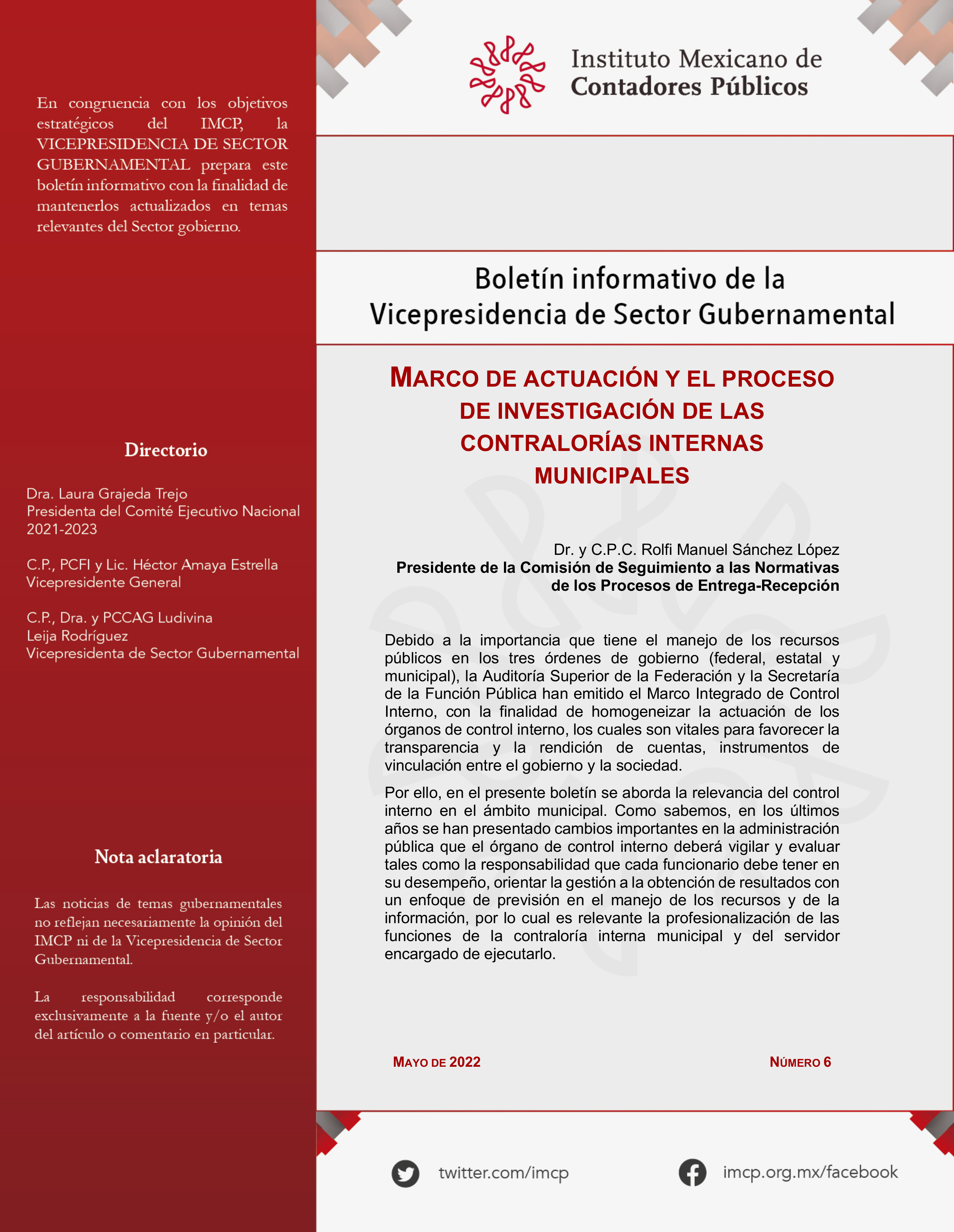 Por ello, en el presente boletín se aborda la relevancia del control interno en el ámbito municipal. Como sabemos, en los últimos años se han presentado cambios importantes en la administración pública que el órgano de control interno deberá vigilar y evaluar tales como la responsabilidad que cada funcionario debe tener en su desempeño, orientar la gestión a la obtención de resultados con un enfoque de previsión en el manejo de los recursos y de la información, por lo cual es relevante la profesionalización de las funciones de la contraloría interna municipal y del servidor encargado de ejecutarlo.