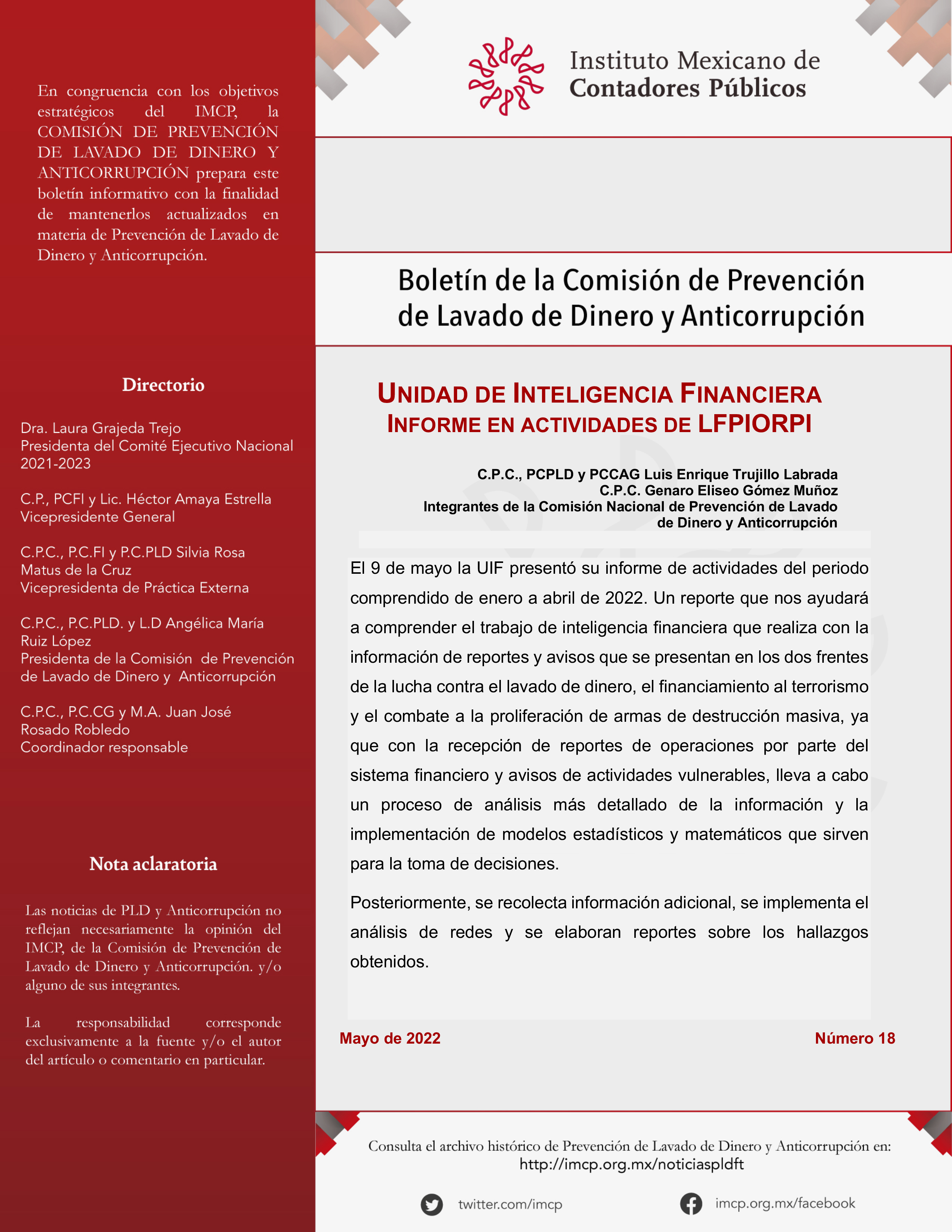 Boletín de la Comisión Nacional de Prevención de Lavado de Dinero y Anticorrupción 18 / Mayo 2022