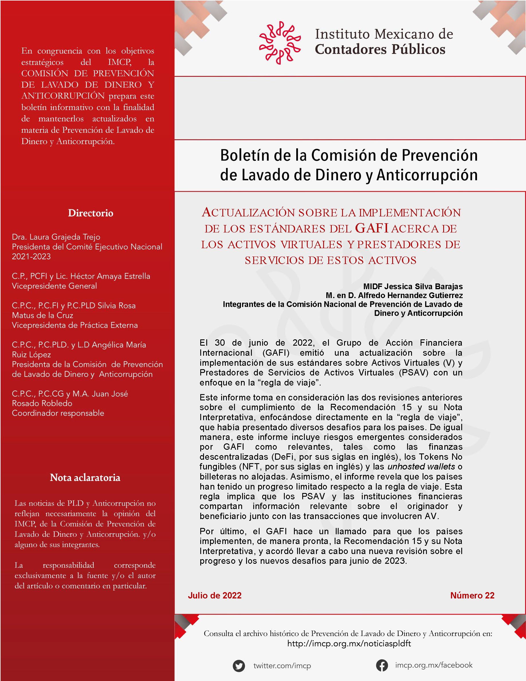 Boletín de la Comisión Nacional de Prevención de Lavado de Dinero y Anticorrupción 22/ Julio 2022