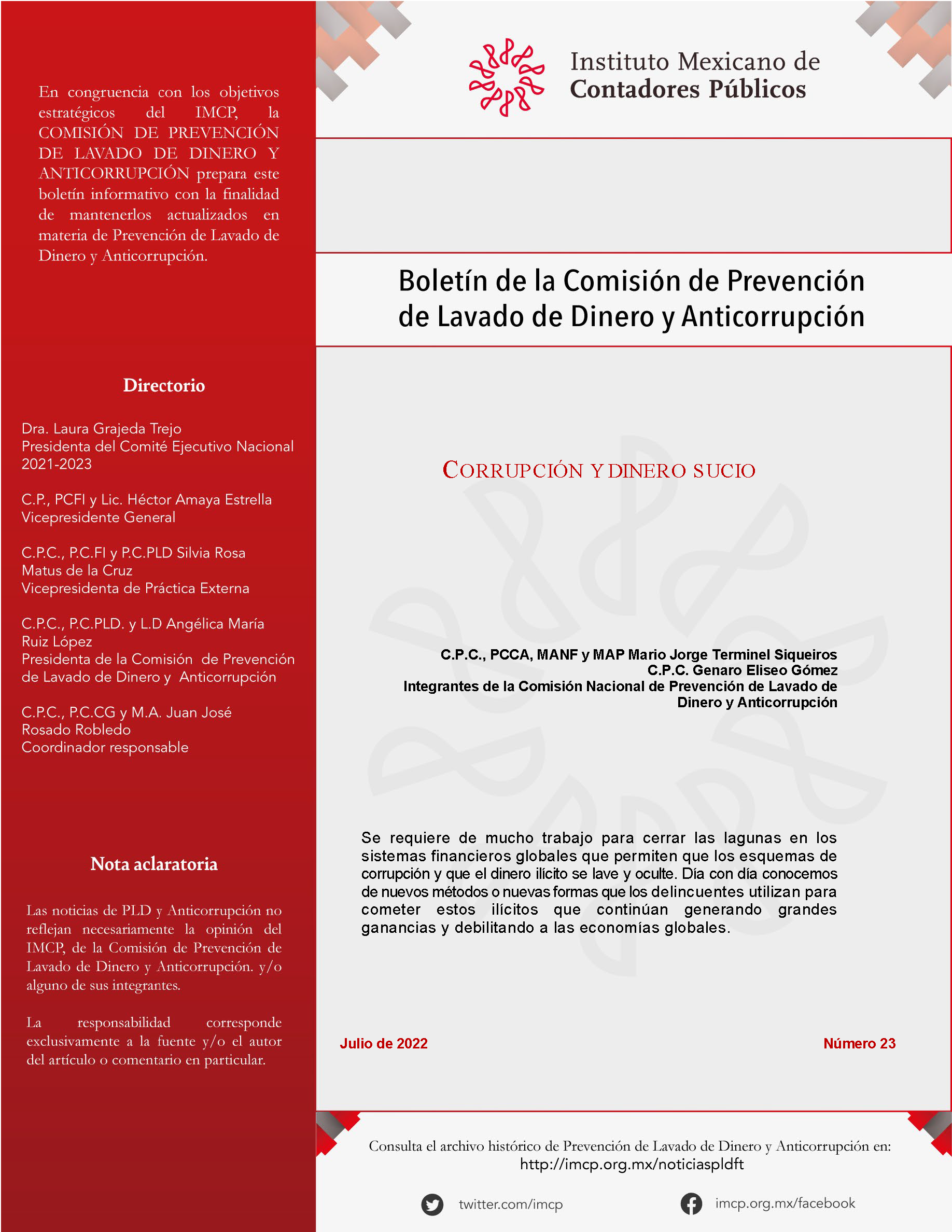 Boletín de la Comisión Nacional de Prevención de Lavado de Dinero y Anticorrupción 23/ Julio 2022