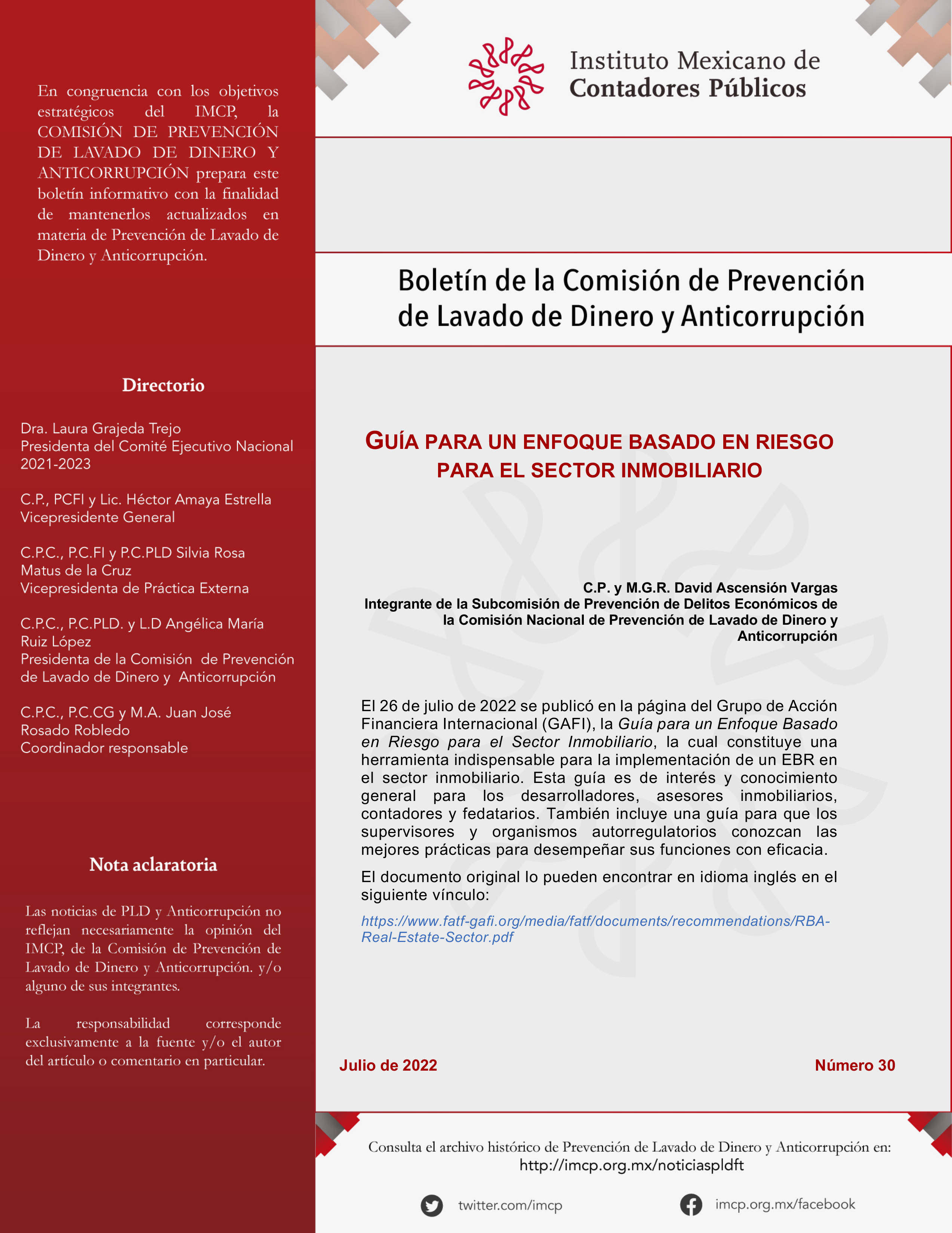 Boletín de la Comisión Nacional de Prevención de Lavado de Dinero y Anticorrupción 30 / Agosto 2022