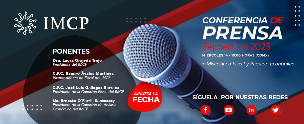 Este miércoles 14 de septiembre de 2022 a las 10:00 h, se llevó a cabo la conferencia de prensa del Instituto Mexicano de Contadores Públicos, A.C. con la participación de: