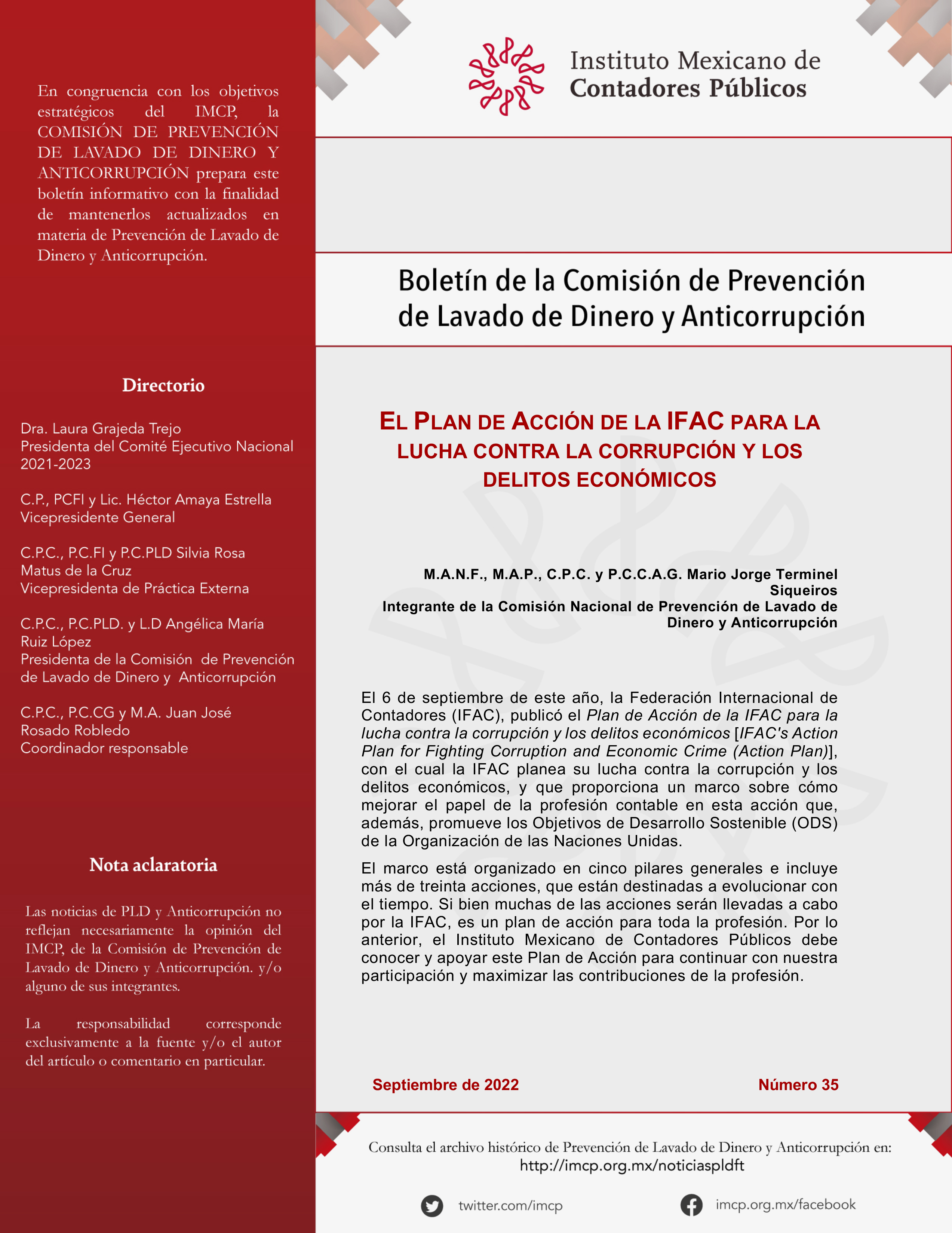 Boletín de la Comisión Nacional de Prevención de Lavado de Dinero y Anticorrupción 35 / Septiembre 2022