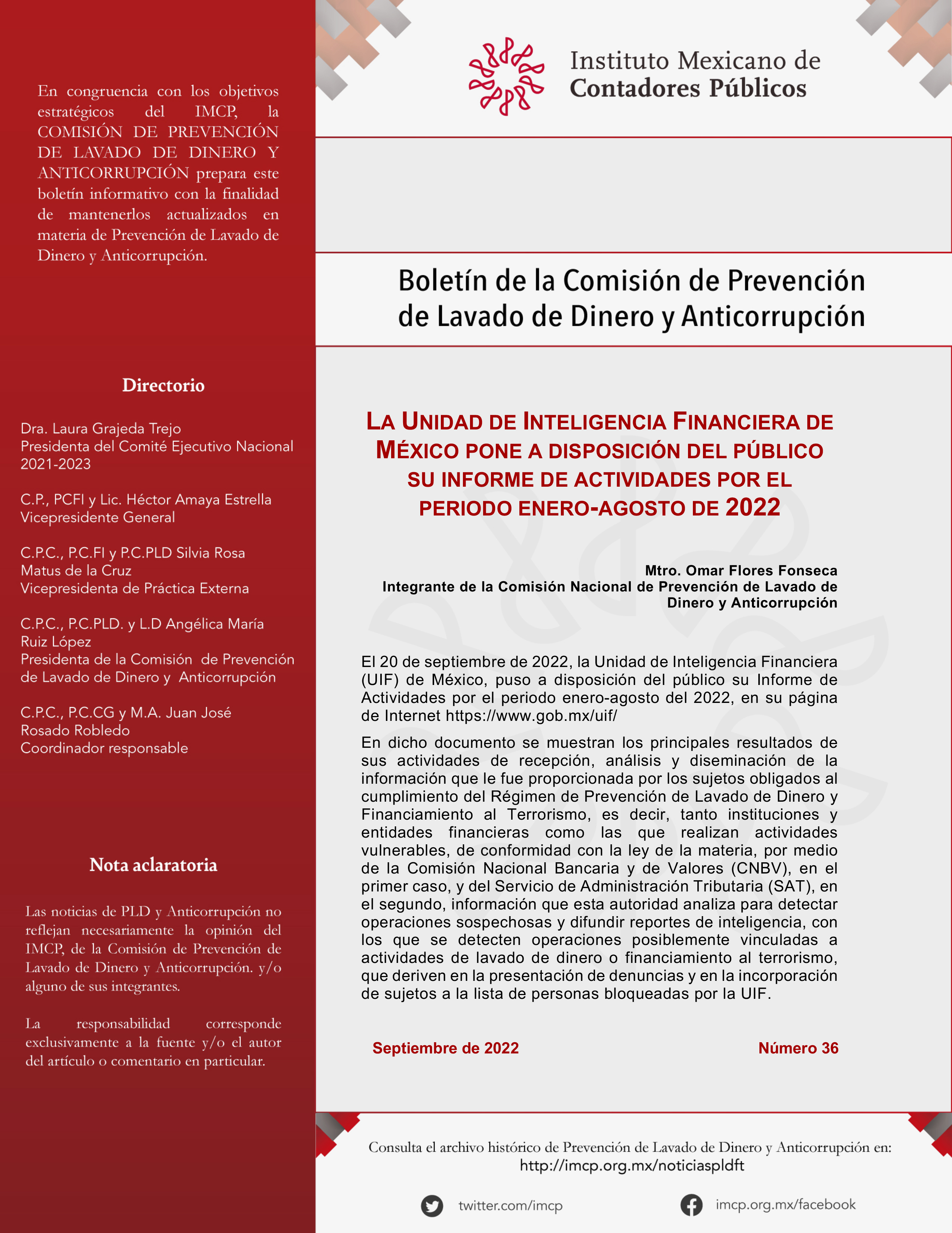 Boletín de la Comisión Nacional de Prevención de Lavado de Dinero y Anticorrupción 36 / Septiembre 2022