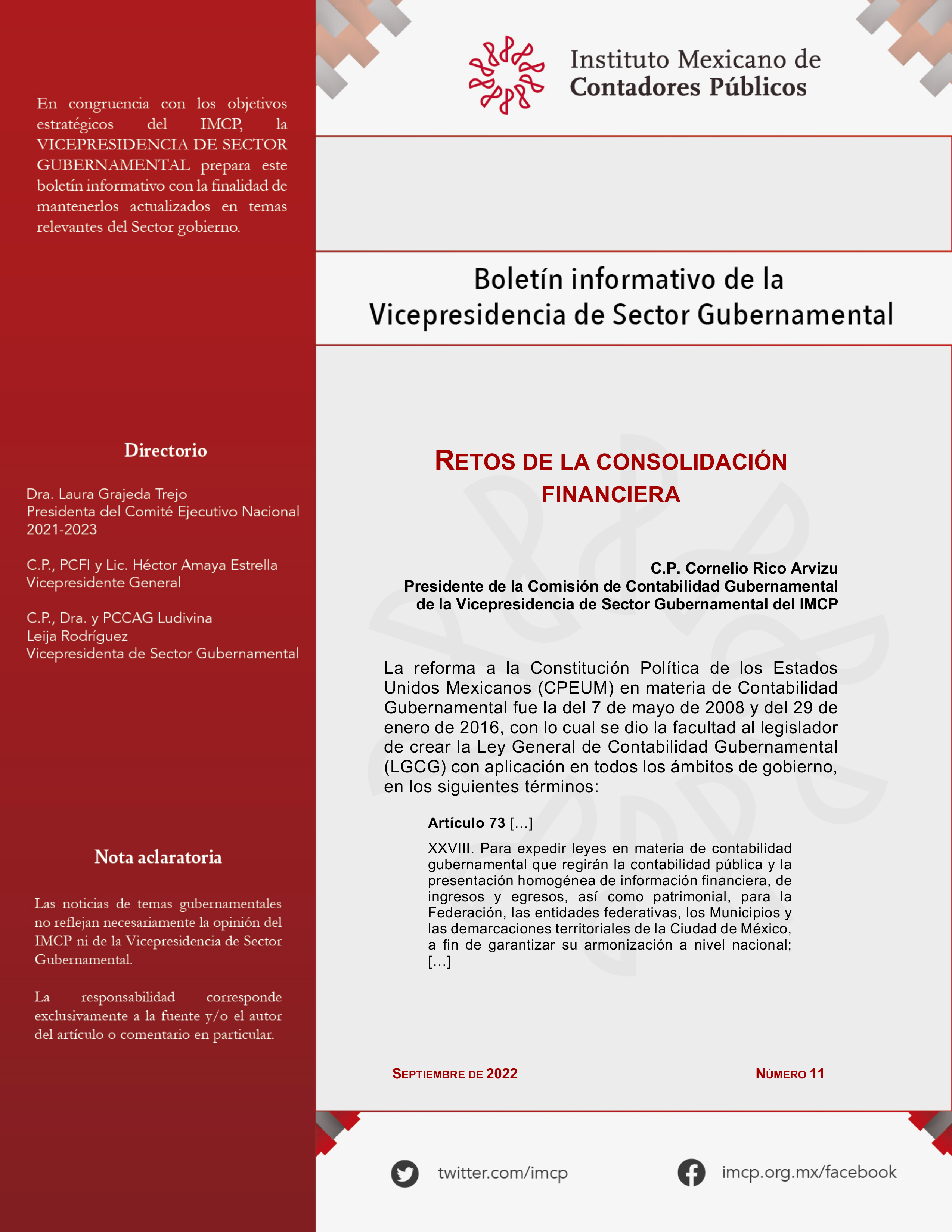 Presidente de la Comisión de Contabilidad Gubernamental de la Vicepresidencia de Sector Gubernamental del IMCP