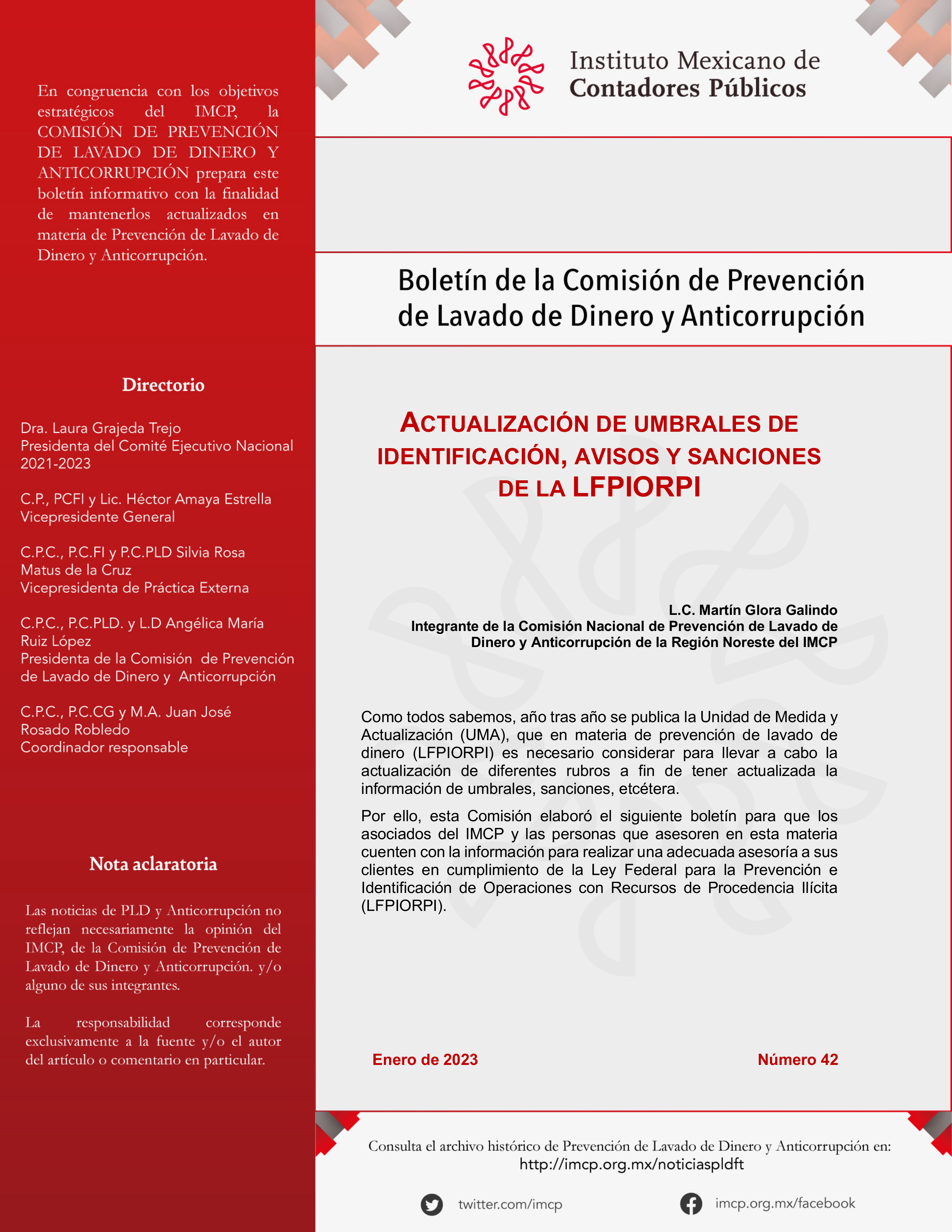 Boletín de la Comisión Nacional de Prevención de Lavado de Dinero y Anticorrupción 42 / Enero 2023