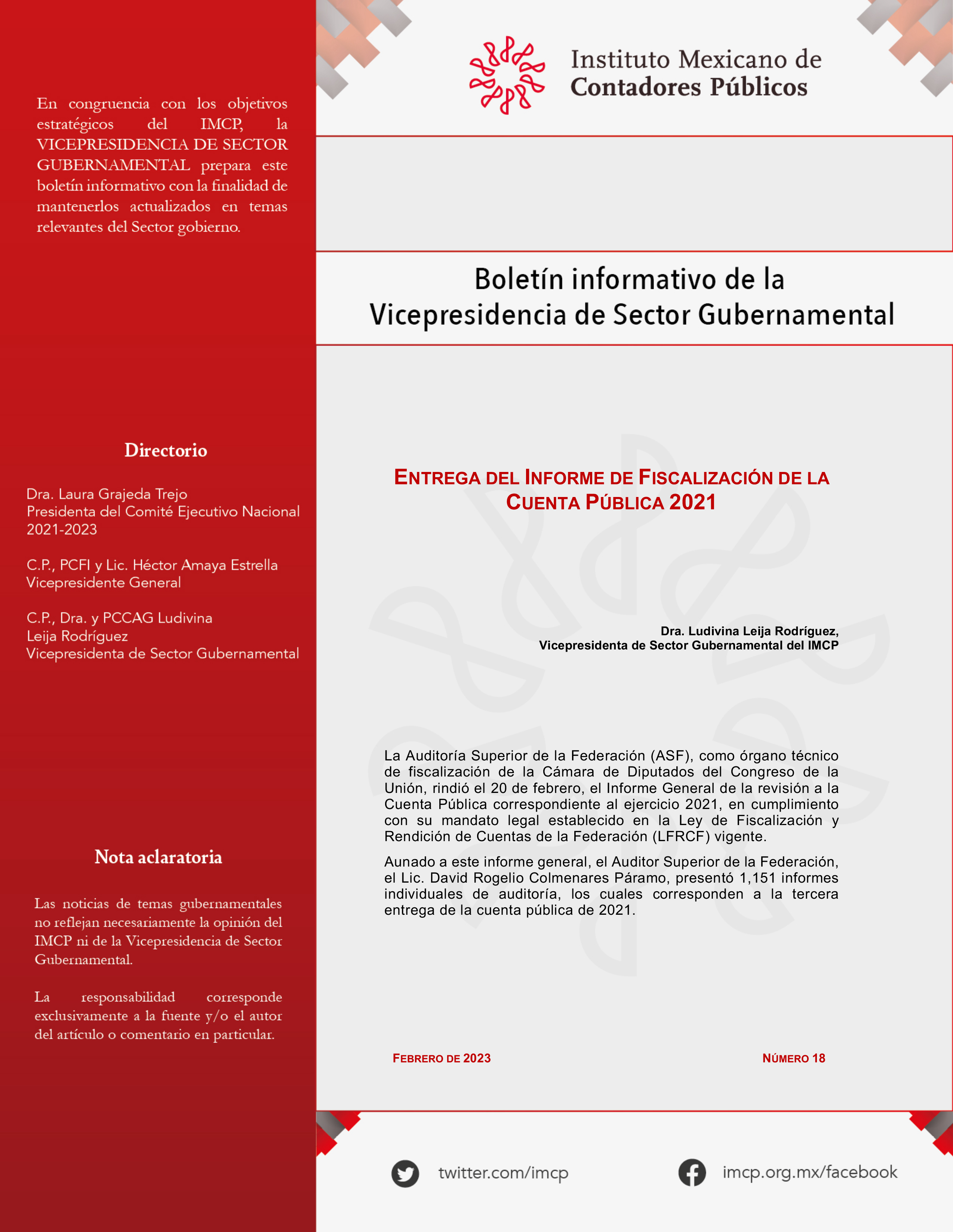 Vicepresidenta de Sector Gubernamental del IMCP