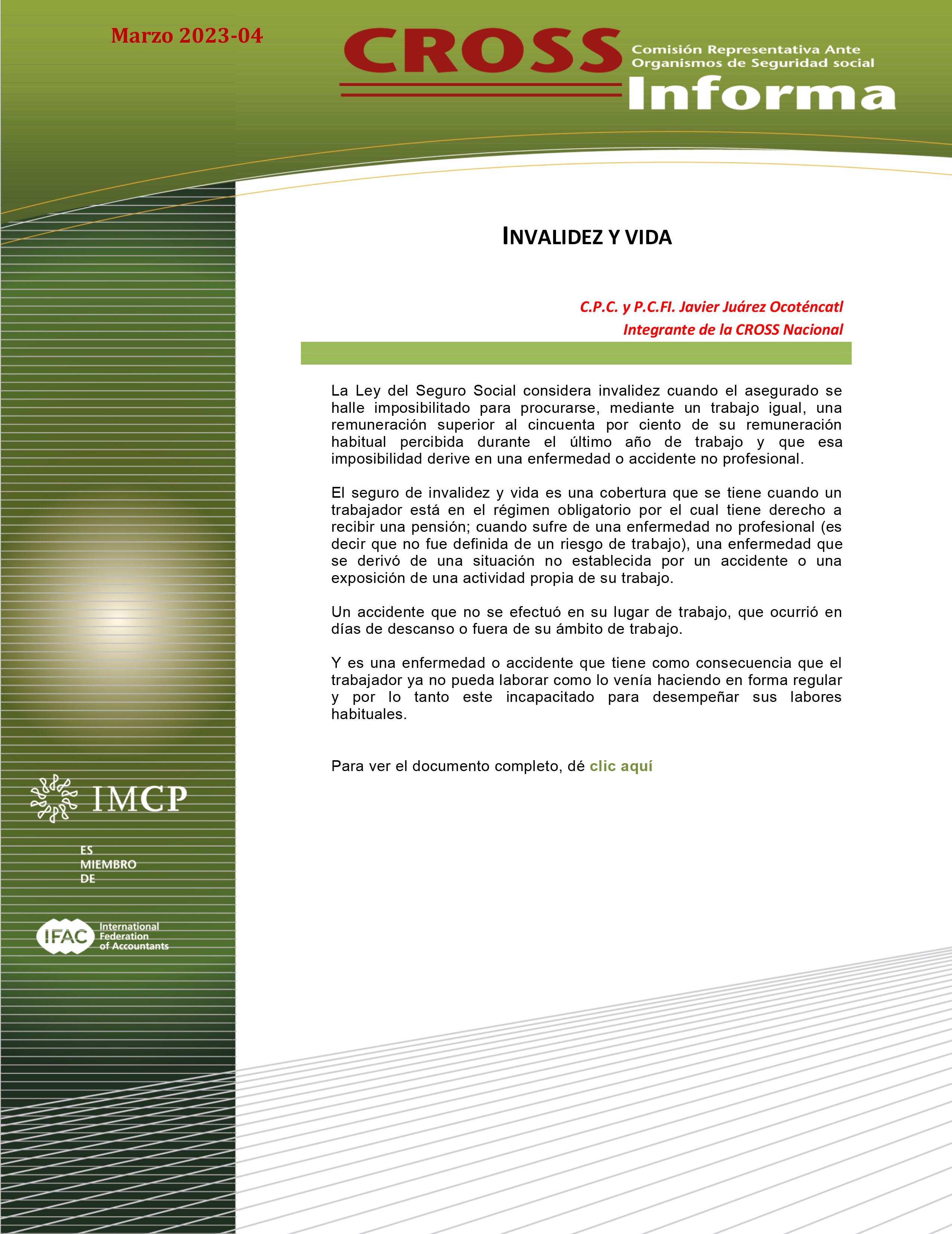 Boletín de Noticias de la CROSS 2023-04 INVALIDEZ Y VIDA