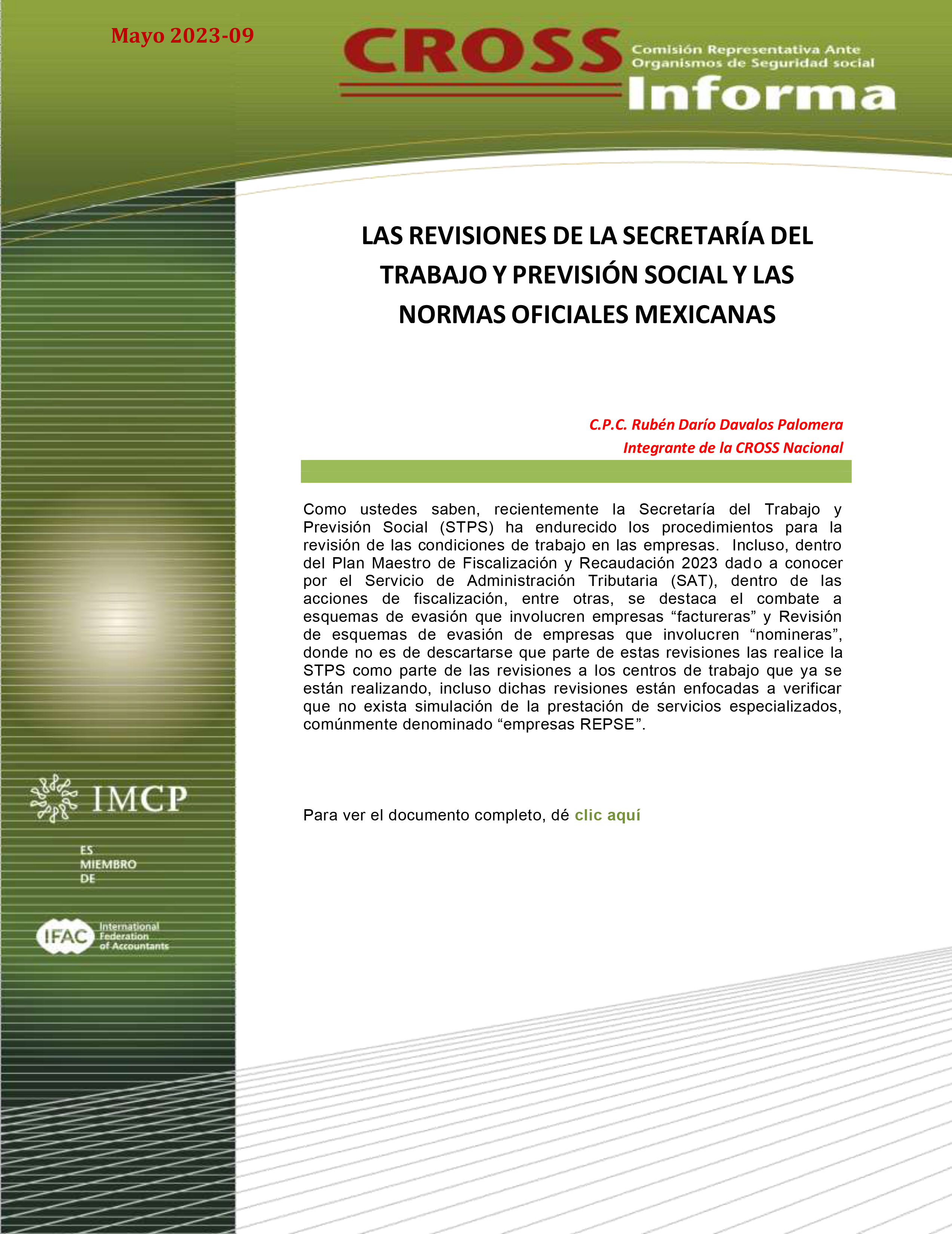 Boletín de Noticias de la CROSS 2023-09 LAS REVISIONES DE LA SECRETARÍA DEL TRABAJO Y PREVISIÓN SOCIAL Y LAS NORMAS OFICIALES MEXICANAS
