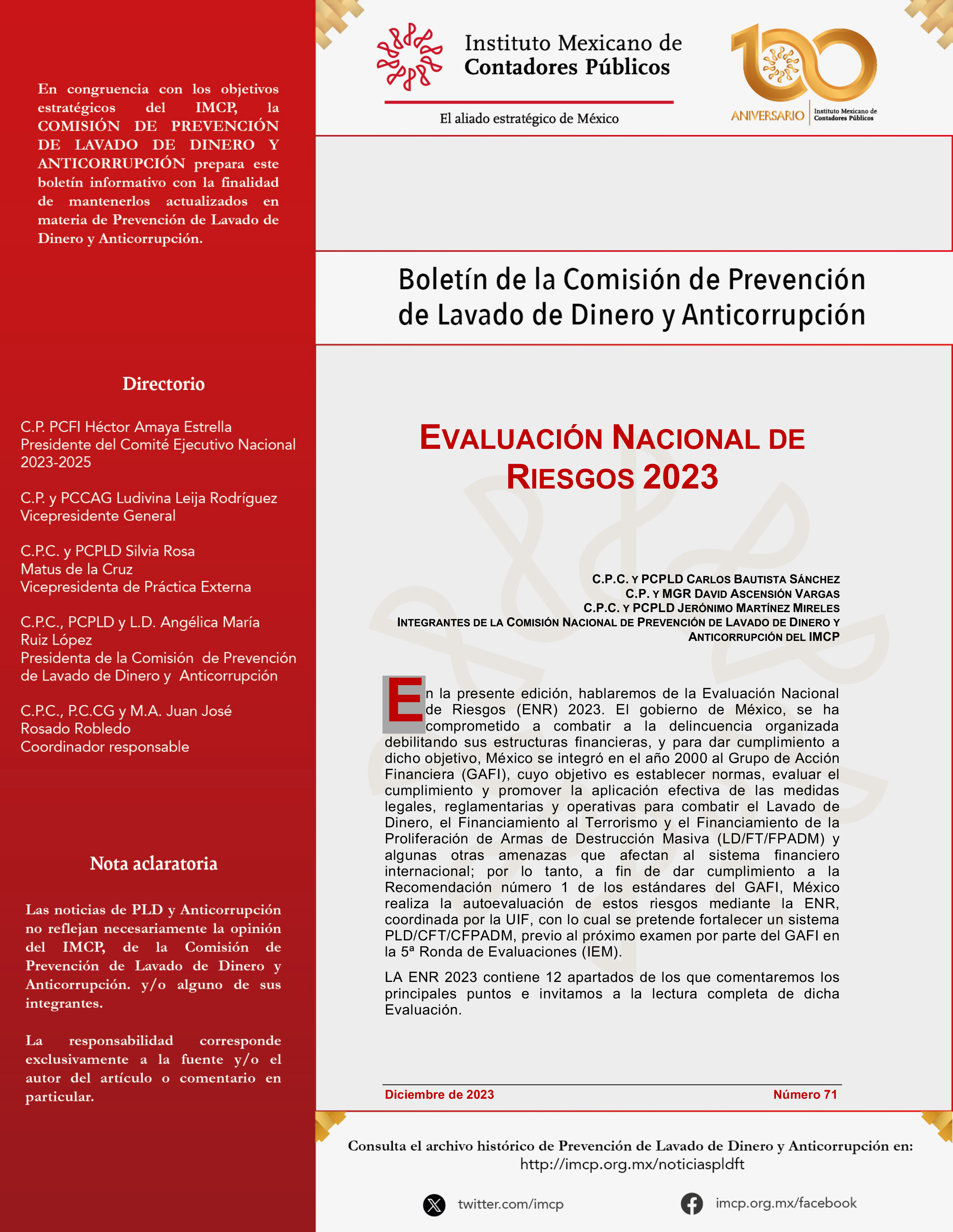Boletín de la Comisión Nacional de Prevención de Lavado de Dinero y Anticorrupción 71 / Diciembre 2023