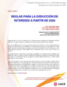 10 Ago Fisco AGAFF 4 Reglas para la Deduccion de Intereses a Partir de 2020 admin_imcp 0 Comments C.P.C. Arturo Mora Matus C.P.C. Efrén Hernández Valdez C.P.C. Jorge Luis ...