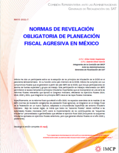 12 May Fisco AGAFF 7 NORMAS DE REVELACIÓN OBLIGATORIA DE PLANEACIÓN FISCAL AGRESIVA EN MÉXICO admin_imcp 0 Comments C.P.C. Víctor Keller Kaplanska C.P.C. Gabriel Oliver García Integrantes de la ...