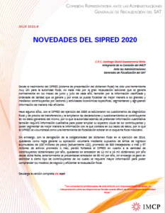 01 Jul Fisco AGAFF 8 NOVEDADES DEL SIPRED 2020 admin_imcp 0 Comments C.P.C. Santiago David Guadarrama Nieto Integrante de la Comisión del IMCP ...