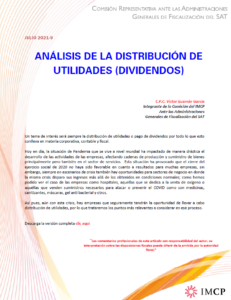 05 Jul Fisco AGAFF 9 ANÁLISIS DE LA DISTRIBUCIÓN DE UTILIDADES (DIVIDENDOS) admin_imcp 0 Comments C.P.C. Víctor Guzmán García Integrante de la Comisión del IMCP Ante ...