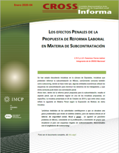 15 Ene CROSS 2020-04 LOS EFECTOS PENALES DE LA PROPUESTA DE REFORMA LABORAL EN MATERIA DE SUBCONTRATACIÓN admin_imcp 0 Comments Se han estado discutiendo iniciativas en la cámara de Diputados, iniciativas ...