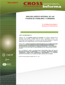 30 Mar CROSS 2020-07 ANÁLISIS JURÍDICO INTEGRAL DE LAS FIGURAS DE CONSEJERO Y COMISARIO admin_imcp 0 Comments Artículo 178.- “La Asamblea General de Accionistas es el Órgano Supremo ...