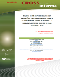 02 Mar CROSS 2020-06 CÁLCULO DE ISR EN PAGOS EN UNA SOLA EXHIBICIÓN A PERSONAS FÍSICAS CON CARGO A LA SUBCUENTA DEL SEGURO DE RETIRO O A LA SUBCUENTA DE RETIRO, CESANTÍA EN EDAD AVANZADA Y VEJEZ admin_imcp 0 Comments A partir de 2020 se incorpora en la Ley del Impuesto ...