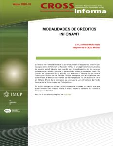 18 May CROSS 2020-10 MODALIDADES DE CRÉDITOS INFONAVIT admin_imcp 0 Comments El Instituto del Fondo Nacional de la Vivienda para los Trabajadores, ...
