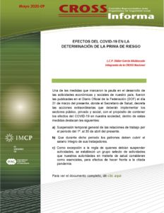18 May CROSS 2020-09 EFECTOS DEL COVID-19 EN LA DETERMINACIÓN DE LA PRIMA DE RIESGO admin_imcp 0 Comments Una de las medidas que marcaron la pauta en el desarrollo ...