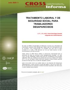 16 Jun CROSS 2020-11 TRATAMIENTO LABORAL Y DE SEGURIDAD SOCIAL PARA TRABAJADORES DESAPARECIDOS admin_imcp 0 Comments En enero de 2020 el Subsecretario de Derechos Humanos de la ...