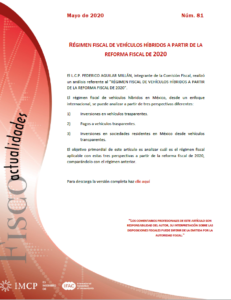 22 May Fiscoactualidades 2020-81 RÉGIMEN FISCAL DE VEHÍCULOS HÍBRIDOS A PARTIR DE LA REFORMA FISCAL DE 2020 admin_imcp 0 Comments El régimen fiscal de vehículos híbridos en México, desde un enfoque ...