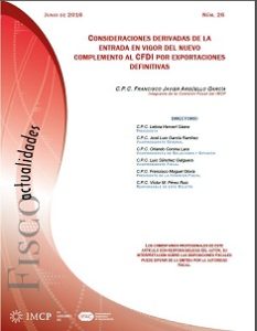28 Jun Fiscoactualidades 2016-26 Consideraciones Derivadas de la Entrada en Vigor del Nuevo Complemento al CFDI por Exportaciones Definitivas. admin_imcp 0 Comments El Servicio de Administración Tributaria (SAT) desde la implementación de la ...