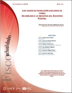 27 Sep Fiscoactualidades 2016-31 Los Juicios de Resolución Exclusiva de Fondo un Análisis a la Iniciativa del Ejecutivo Federal admin_imcp 0 Comments El pasado día 7 de septiembre de 2016, el actual titular ...