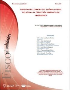 17 Nov Fiscoactualidades 2016-33 Aspectos Relevantes del Estímulo Fiscal Relativo a la Deducción Inmediata de Inversiones admin_imcp 0 Comments C.P.C. Juan Manuel Franco Gallardo Integrante de la Comisión Fiscal del ...