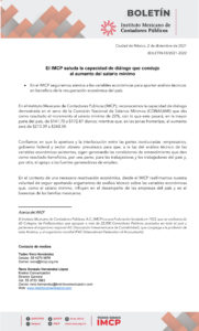 03 Dic Lee el boletín completo admin_imcp 0 Comments El IMCP saluda la capacidad de diálogo que condujo al aumento ...