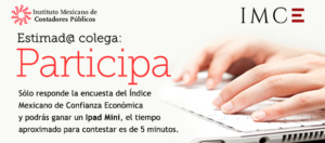 30 Ene Participa en la encuesta del Índice Mexicano de Confianza Económica admin_imcp 0 Comments Podrás ganar un Ipad Mini, el tiempo aproximado para contestar son ...