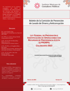 01 Feb Boletín de la Comisión Nacional de Prevención de Lavado de Dinero y Anticorrupción 43 / Febrero 2023 admin_imcp 0 Comments Ley Federal de Prevención e Identificación de Operaciones con Recursos de ...
