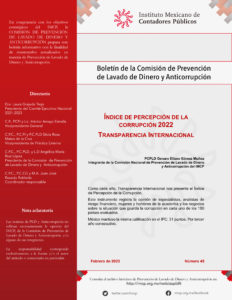 08 Feb Boletín de la Comisión Nacional de Prevención de Lavado de Dinero y Anticorrupción 45 / Febrero 2023 admin_imcp 0 Comments Índice de percepción de la corrupción 2022 Transparencia Internacional PCPLD Genaro ...