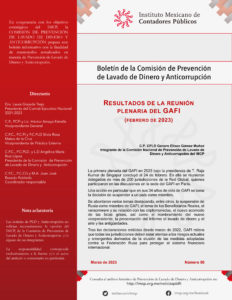 02 Mar Boletín de la Comisión Nacional de Prevención de Lavado de Dinero y Anticorrupción 50 / Marzo 2023 admin_imcp 0 Comments Resultados de la reunión plenaria del GAFI (febrero de 2023) ...