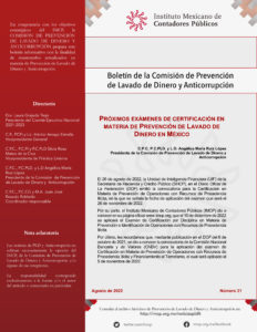 29 Ago Boletín de la Comisión Nacional de Prevención de Lavado de Dinero y Anticorrupción 31 / Agosto 2022 admin_imcp 0 Comments Próximos exámenes de certificación en materia de Prevención de Lavado de ...