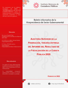 25 Feb AUDITORÍA SUPERIOR DE LA FEDERACIÓN, TERCERA ENTREGA DEL INFORME DEL RESULTADO DE LA FISCALIZACIÓN DE LA CUENTA PÚBLICA 2020 admin_imcp 0 Comments El pasado 20 de febrero, la Auditoría Superior de la Federación ...