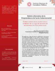 27 Jun COMENTARIOS EN RELACIÓN CON EL AUMENTO DE LA TASA DE INTERÉS DE REFERENCIA EN 75 PUNTOS BASE admin_imcp 0 Comments M.C. Jesús Javier González Alcázar Presidente de la Comisión de Seguimiento ...